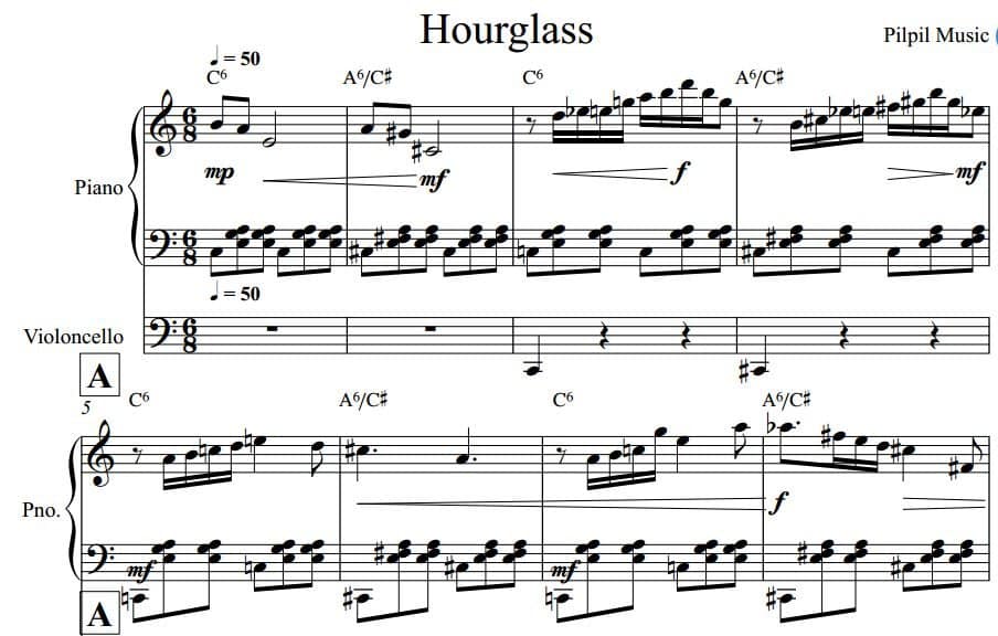 - Hourglass (Piano & cello version – 2021), focused on intimacy and chamber interaction